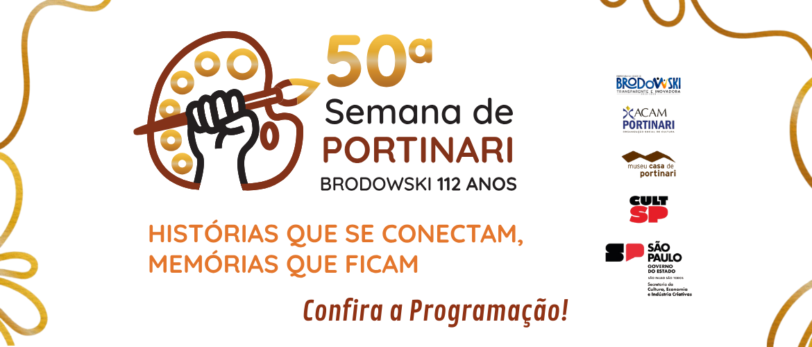 - Roda de Conversa “Eu estava aí nesse dia: 50 anos da Semana de Portinari” – Conversa e memórias sobre a atuação da população brodowskiana nos 50 anos da Semana de Portinari.